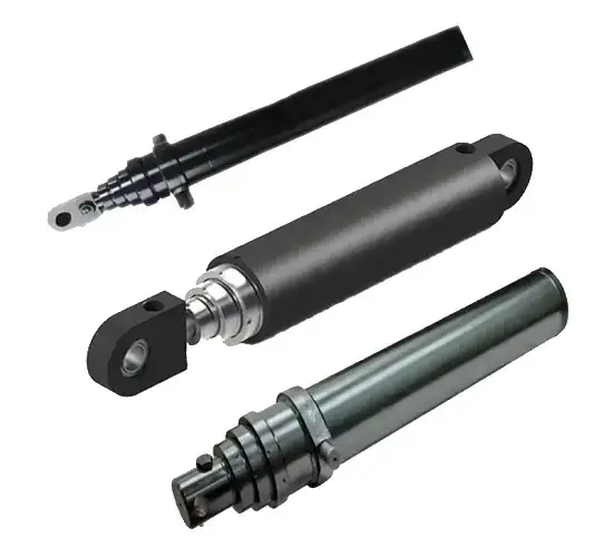 - Cilindros telescópicos: compostos por estágios que permitem maior curso em menor espaço; comuns em caminhões e plataformas.